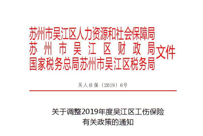 關(guān)于調(diào)整2019年度吳江區(qū)工傷保險(xiǎn)有關(guān)政策的通知